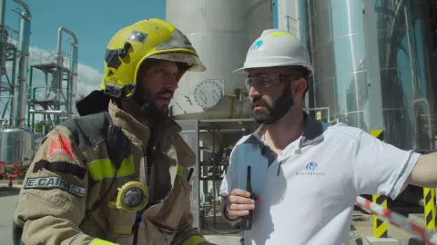 Daniel Vega, occupational risk prevention technician at Bioiberica- Our objective with the drills is to practise the self-protection plan and see the different situations we may be faced with at the plant. The idea is to always try and go a step further, testing different situations and always trying to improve. + Our number one objective is to create a safe and healthy working environment.