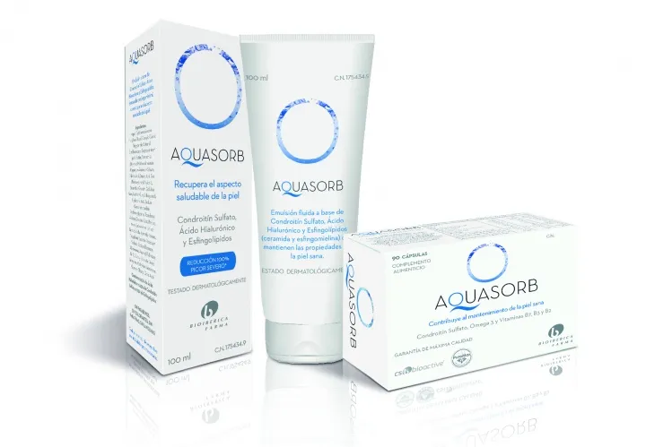 Aquasorb® se presenta en dos formatos: tópico y oral, que contienen ingredientes diferentes, complementarios entre ellos y que, combinados, permiten alcanzar una mayor eficacia. En un estudio observacional con 32 pacientes con dermatitis atópica, psoriasis o piel xerótica se registró una mejora en el índice global del 78%. Además, el 80% de los pacientes mejoraron en el grado de descamación, eritema, prurito, hiperqueratosis y fisuras o grietas.